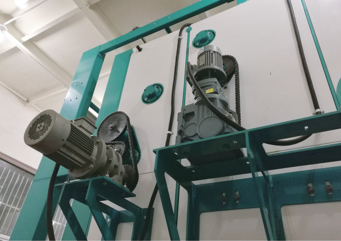 2、主蒸化箱體:主要包(bāo)括進(jìn)布汽封箱、汽蒸箱頭段(duàn)和汽蒸箱尾段以及(jí)多個中段(duàn)(每個中段容(róng)布量70米:兩個循環風機(jī)、兩個熱交換器、兩套蒸汽加濕(shī)噴嘴等)、帶蒸汽加熱的頂(dǐng)部、帶照明的觀察窗、成環進布輥、成環機構、鏈條(tiáo)軌(guǐ)道、掛布輥軌道、掛布輥、主傳(chuán)動、帶容布量探(tàn)測器的出布調速裝(zhuāng)置、出布汽封箱、離心排風機等;