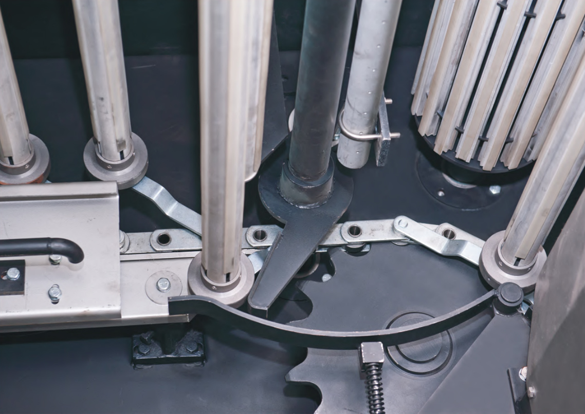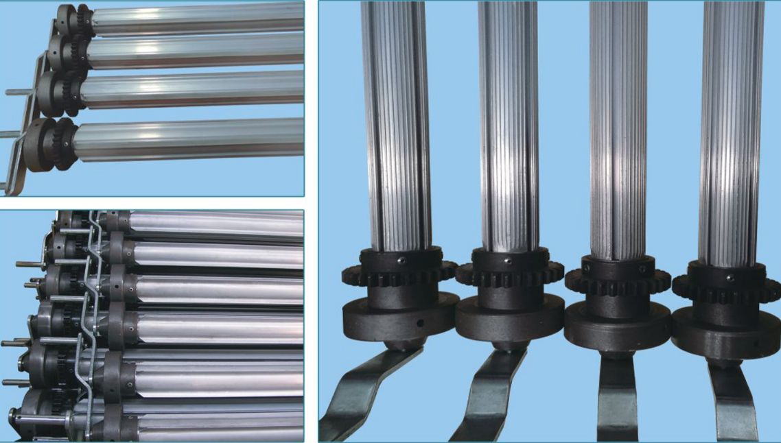 3、蒸箱內掛布輥(gǔn)直徑為φ50mm的輥體,輕巧、堅固(gù),在使用中順著軌道自轉,避免出(chū)現橫(héng)檔(dàng)印等瑕疵。並可根據不同工藝(yì)及織物選配:嵌(qiàn)膠條(tiáo)型,四翼(yì)型及細齒型三種形式掛布(bù)輥。